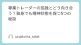 専業トレーダーは孤独を感じやすいですが、だからこそ「繋がり」を意識的に作ることが重要です。