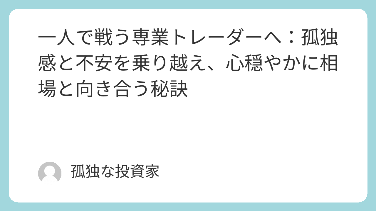 一人で戦う専業トレーダーへ:孤独感と不安を乗り越え、心穏やかに相場と向き合う秘訣