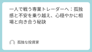 • 一人で戦う専業トレーダーへ:孤独感と不安を乗り越え、心穏やかに相場と向き合う秘訣